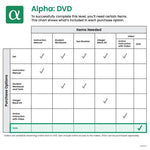 To successfully complete the Alpha level, you will need the following components. Please compare them carefully against the "What's Included" section: