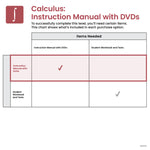 The Calculus Instruction Manual with DVDs features the resources instructors need to teach this level including the Instruction Manual and Instructional lesson videos on a DVD.