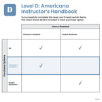 The Level D Americana Instructor’s Handbook is ideal for instructors who need the teaching material and whose students already have the Student Workbooks.