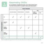 The Math-U-See Geometry DVDs are ideal for instructors who already own the Instruction Manual, and whose students have all the necessary student materials including the Student Workbook and Tests booklet.