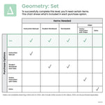 Empower your student with this comprehensive set designed to provide everything you need to get started in the Geometry level of Math-U-See. The Geometry Set comes complete with every component necessary for instruction, including Instruction Manual, online lesson videos, Student Workbook, and Tests booklet.